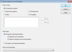 In the case of multilingual use of HOPEX, you can query objects to be translated in the repository.