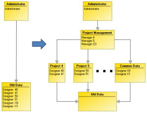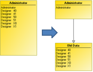 4. Attach all users (except the "Administrator" user) and all objects of all repositories to the "Old Data" writing access area.