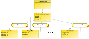 • with writing access area level higher than projects so as to manage conflicts between projects, for example "Project Management".