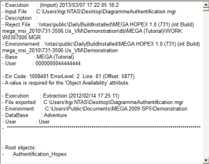 • MEGA XML format files. These files have .XMG extension and contain commands or data (objects and links).