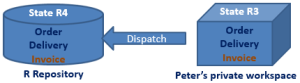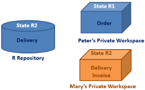 • Peter opens a private workspace, his repository view is state "n" (R1).