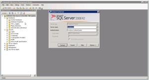 3. If your Windows account is the one having the sysadmin right, stay in « Windows Authentication » mode. Otherwise, switch to “SQL Server Authentication”, and provide the username and password. The field “Server Name” is the name of the instance.