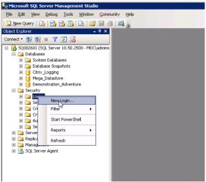 5. Right-click Logins and select New Login.