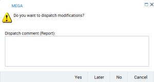 2. (Optional) In the Dispatch comment (Report) frame, enter a comment to remind you of modifications made in your private workspace.