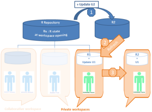 A user can see modifications dispatched by other users of this repository without dispatching his/her own modifications. To do this, the user refreshes his/her data.