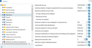 In the Administration desktop, HOPEX options can be configured at the following levels: