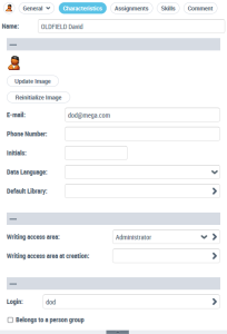 • the Characteristics tab to define or modify the person properties.
