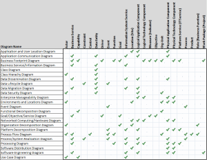 List of diagrams and concepts proposed for the standard implementation of TOGAF