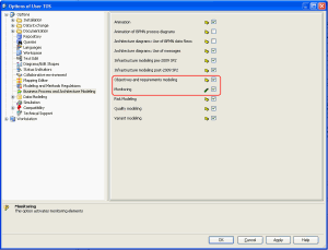 Tools > Option > Business Process and Architecture Modeling > Objectives and requirements modeling.