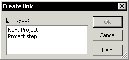 It offers a choice between a "Next Project" link which indicates a sequence between two projects, and a "Project Step" link which indicates that one project is a step to be carried out in another.