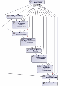 The Scheduling Diagram allows you to describe the sequencing of your organization, architecture, integration or development projects in conjunction with a TOGAF 9 framework.