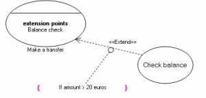 When a use case includes too many alternatives and exceptions, these are represented separately as relationships that extend the standard use case.