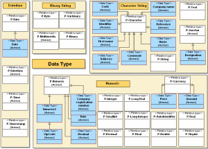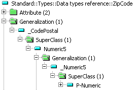 In the following example, the primitive type “ZipCode” is a specialization of the “Numeric5” type of length 5, which is itself a specialization of the standard type “P-Numeric”.