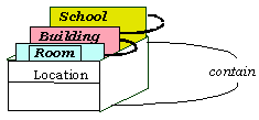 A classroom is contained in a building, which is contained in a school.
