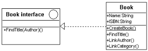 The interface class appears in the drawing with a distinctive circle top right: