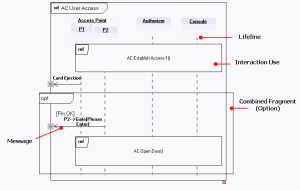 • An optional behavior (represented by a combined fragment) can influence door opening.