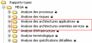 Les rapports types propres à HOPEX IT Architecture concernent différents domaines; les architectures applicatives, les architectures orientées services (SOA), les contraintes temporelles qui agissent sur le SI etc.