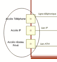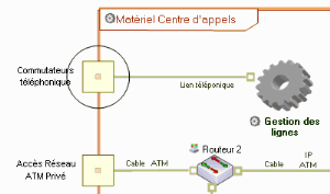 Par exemple, dans le cas du centre de support, le canal de communication "Ligne téléphonique" relie le port de communication "Accès téléphone" à l’Infrastructure générale du centre de support.