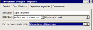 Depuis la fenêtre de propriétés du point d’élément de communication, vous pouvez voir que la "Ligne téléphonique" est connectée à l’objet manufacturé via le port de communication "Commutateur téléphonique".