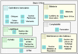 Une deuxième zone, appelée "Back office" contient les applications utilisées pour le service du client, mais sans sa présence.