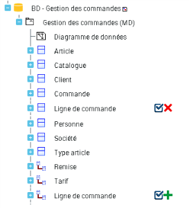 A la fin de la dénormalisation, vous pouvez voir que l’association "Ligne de commande" qui remplace l’entité est désormais en correspondance avec la table "Ligne de commande".
