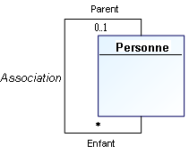 Ci-dessus "Parent" et "Enfant" sont les deux rôles joués par l’entité "Personne" dans l'association.