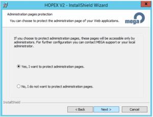 Defines wether to protect or not the /admin subdirectory of the Hopex installation (highly recommended)