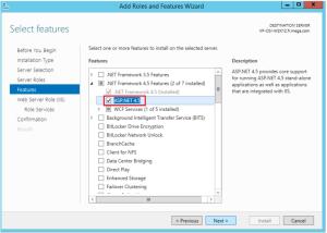 3. In the “Features”, make sure to activate the “ASP.NET 4.5”: