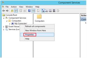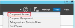 He must be able to launch COM applications by default. To assign this right, proceed from the “Component Services” dialog box through the “Tools” section of the “Server Manager”: