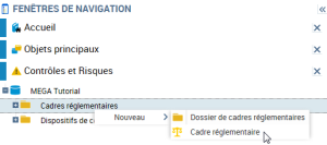 2. Dans le menu contextuel du dossier "Cadres réglementaires", sélectionnez Nouveau > Cadre réglementaire.