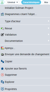 Depuis la barre de menu des pages de propriétés d’un objet vous pouvez exécuter différentes actions. Certaines actions sont spécifiques à l’objet, d’autres sont génériques comme par exemple :
