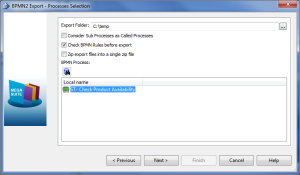 • Check BPMN Rules before export: this option checks whether processes you want to export conform to BPMN modeling rules. If not, a message asks if you want to continue with the export. Click Yes to continue or No to stop the export.