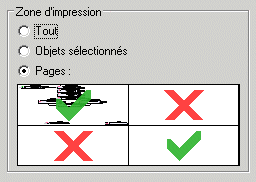 Le cadre Zone d'impression comprend le nombre de pages précisé dans la fenêtre Mise en page. Par défaut, toutes les pages sont sélectionnées.