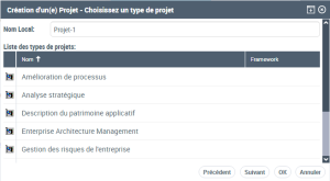 HOPEX propose un assistant à la création de projet permettant de mettre la bonne méthode de travail à disposition des équipes de projet.
