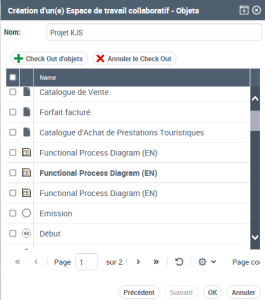 • vous ne pouvez pas modifier, depuis votre espace de travail collaboratif, les objets du référentiel qui ne sont pas réservés en Check Out dans votre espace de travail collaboratif