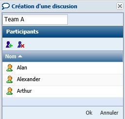 Si vous ne renseignez pas ce champ, par défaut le nom de la discussion est celui des noms des participants de la discussion.