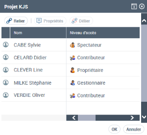 La fenêtre des participants à l’espace de travail collaboratif apparaît.