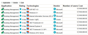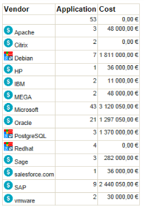 Le résultat du rapport présente les fournisseurs trier par ordre alphabétique et pour chaque fournisseur indique le nombre d’applications et le coût total.