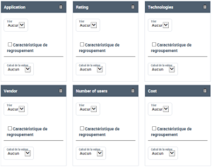 Exemple 2 : à partir d’un Report DataSet qui a pour définition "Application Technologies", sur "Vendor" sélectionnez Caractéristique de regroupement pour regrouper les applications en fonction de leur fournisseur.