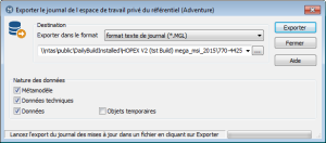 • Données permet d'exporter les modifications des données du référentiel, en particulier l’espace de travail.