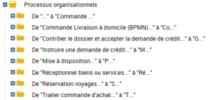 Pour cela, HOPEX vous propose de créer des dossiers d’objets. Vous pouvez, par exemple, créer des dossiers qui regroupent vos objets pour les classer selon vos propres critères.