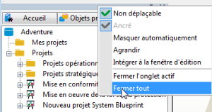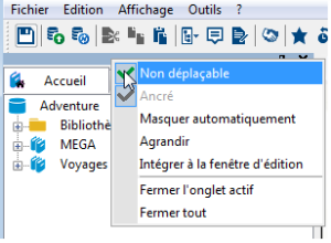 1. Dans la fenêtre d’édition, faites un clic droit sur l’onglet désiré et sélectionnez :