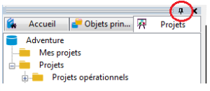 Une épingle située dans la barre de titre permet de passer en mode « Masquer automatiquement ». Cette fonctionnalité vous permet d’augmenter l'espace alloué à l'affichage et à la modification en masquant automatiquement les fenêtres de navigation et d’édition.