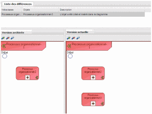 Cette fonctionnalité fournit une interface permettant, par exemple, de visualiser les objets qui ont été ajoutés ou supprimés d’un diagramme depuis un état du référentiel donné. Il s’agit d’une navigation temporelle appliquée aux diagrammes.