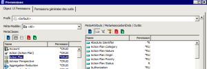La feuille Excel générée comporte l’ensemble des permissions sur chaque MetaClass: