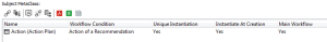 • Instanciation unique : permet d’indiquer que pour une instance de sujet vous ne pouvez avoir qu’une seule instance de workflow en cours.
