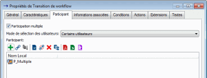 1. Dans la fenêtre de propriétés d’une transition de workflow, sélectionnez l’onglet Participant.