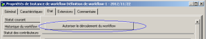 1. Dans la fenêtre de propriétés de l’instance de workflow, cliquez sur l’onglet Etat.