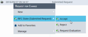 3. Dans le menu contextuel qui apparaît, sélectionnez Etat de la demande de changement, puis l’état désiré.