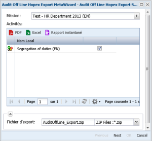 Pour exécuter la mission en mode Offline, vous devez l’extraire de HOPEX Internal Control et l’importer dans l’application Offline.